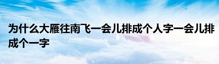 关于为什么大雁往南飞一会儿排成个人字一会儿排成个一字这个很多人还不知道,今天菲菲来为大家解答以上的问题,现在让我们一起来看看吧!