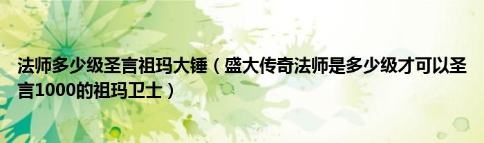 关于法师多少级圣言祖玛大锤,盛大传奇法师是多少级才可以圣言1000的祖玛卫士这个很多人还不知道,今天菲菲来为大家解答以上的问题,现在让我们一起来看看吧!