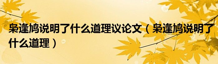 2、一种是站在斑鸠的立场上看问题:在一个环境中得不到认同,就要反思自己的问题或不足,而不是逃避。
