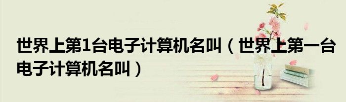 世界上第1台电子计算机名叫(世界上第一台电子计算机名叫)