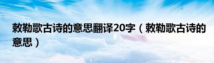 大家好,小晋来为大家解答以下问题,关于敕勒歌古诗的意思翻译20字,敕勒歌古诗的意思很多人还不知道,今天让我们一起来看看吧!