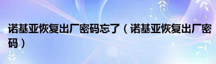 诺基亚恢复出厂密码忘了(诺基亚恢复出厂密码)
