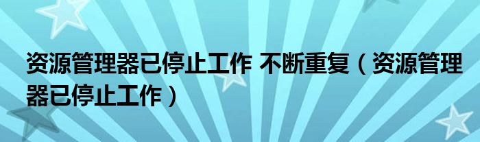 大家好,来宝来为大家解答以下问题,资源管理器已停止工作 不断重复,资源管理器已停止工作很多人还不知道,今天让我们一起来看看吧!