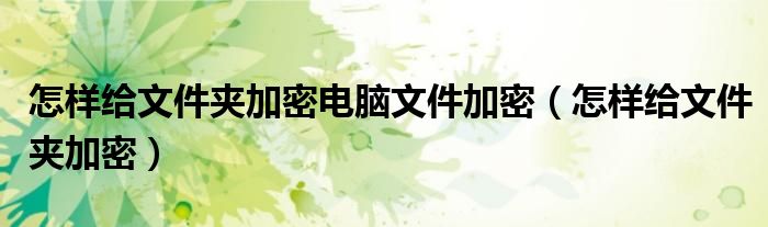 怎样给文件夹加密电脑文件加密(怎样给文件夹加密)
