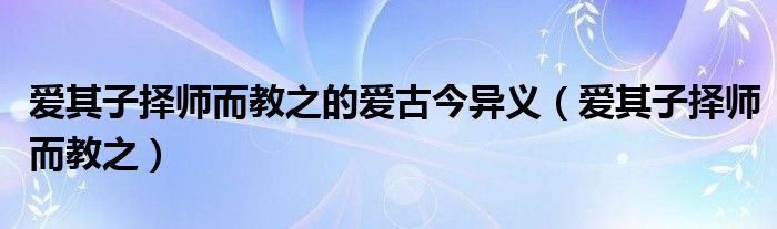 关于爱其子择师而教之的爱古今异义,爱其子择师而教之这个很多人还不知道,今天菲菲来为大家解答以上的问题,现在让我们一起来看看吧!