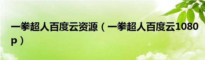 关于一拳超人百度云资源,一拳超人百度云1080p这个很多人还不知道,今天菲菲来为大家解答以上的问题,现在让我们一起来看看吧!