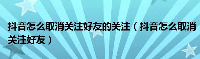 抖音怎么取消关注好友的关注(抖音怎么取消关注好友)