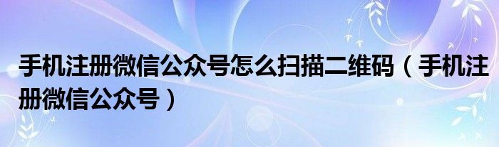手机注册微信公众号怎么扫描二维码(手机注册微信公众号)
