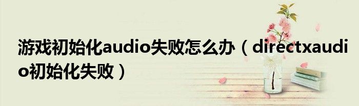 关于游戏初始化audio失败怎么办,directxaudio初始化失败这个很多人还不知道,今天菲菲来为大家解答以上的问题,现在让我们一起来看看吧!