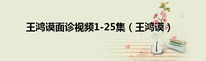 关于王鸿谟面诊视频1-25集,王鸿谟这个很多人还不知道,今天菲菲来为大家解答以上的问题,现在让我们一起来看看吧!