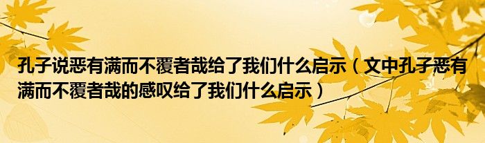 关于孔子说恶有满而不覆者哉给了我们什么启示,文中孔子恶有满而不覆者哉的感叹给了我们什么启示这个很多人还不知道,今天菲菲来为大家解答以上的问题,现在让我们一起来看看吧!