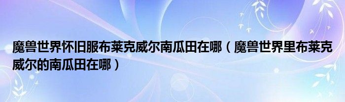 关于魔兽世界怀旧服布莱克威尔南瓜田在哪,魔兽世界里布莱克威尔的南瓜田在哪这个很多人还不知道,今天菲菲来为大家解答以上的问题,现在让我们一起来看看吧!