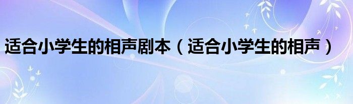 关于适合小学生的相声剧本,适合小学生的相声这个很多人还不知道,今天菲菲来为大家解答以上的问题,现在让我们一起来看看吧!