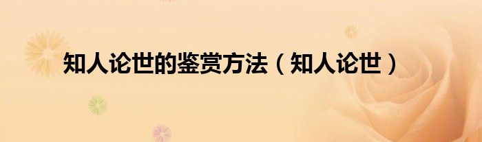 关于知人论世的鉴赏方法,知人论世这个很多人还不知道,今天菲菲来为大家解答以上的问题,现在让我们一起来看看吧!