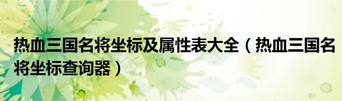 关于热血三国名将坐标及属性表大全,热血三国名将坐标查询器这个很多人还不知道,今天菲菲来为大家解答以上的问题,现在让我们一起来看看吧!