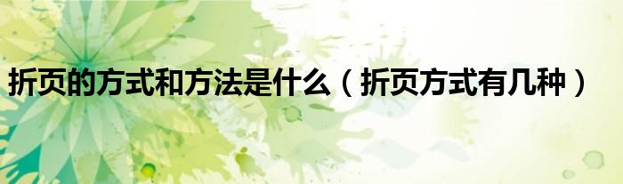 关于折页的方式和方法是什么,折页方式有几种这个很多人还不知道,今天菲菲来为大家解答以上的问题,现在让我们一起来看看吧!