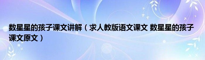 关于数星星的孩子课文讲解,求人教版语文课文 数星星的孩子 课文原文这个很多人还不知道,今天菲菲来为大家解答以上的问题,现在让我们一起来看看吧!