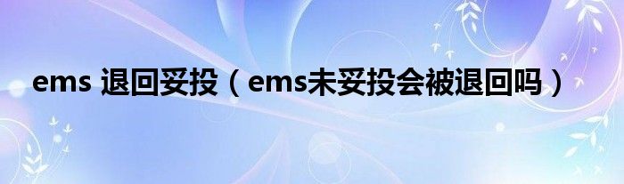 大家好,小晋来为大家解答以下问题,关于ems 退回妥投,ems未妥投会被退回吗很多人还不知道,今天让我们一起来看看吧!