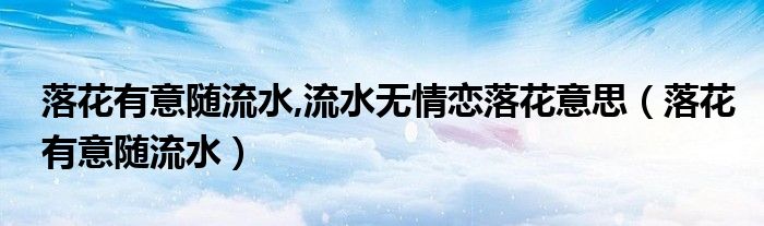 关于落花有意随流水,流水无情恋落花意思,落花有意随流水这个很多人还不知道,今天菲菲来为大家解答以上的问题,现在让我们一起来看看吧!