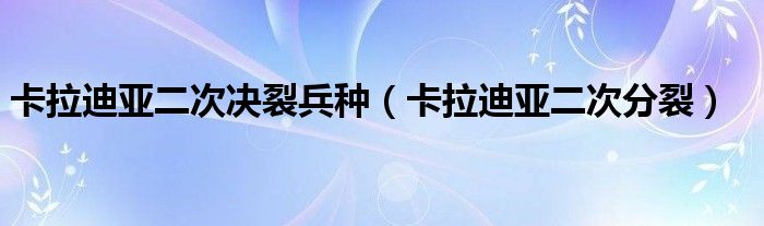关于卡拉迪亚二次决裂兵种,卡拉迪亚二次分裂这个很多人还不知道,今天菲菲来为大家解答以上的问题,现在让我们一起来看看吧!